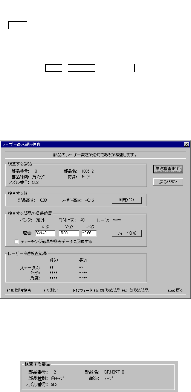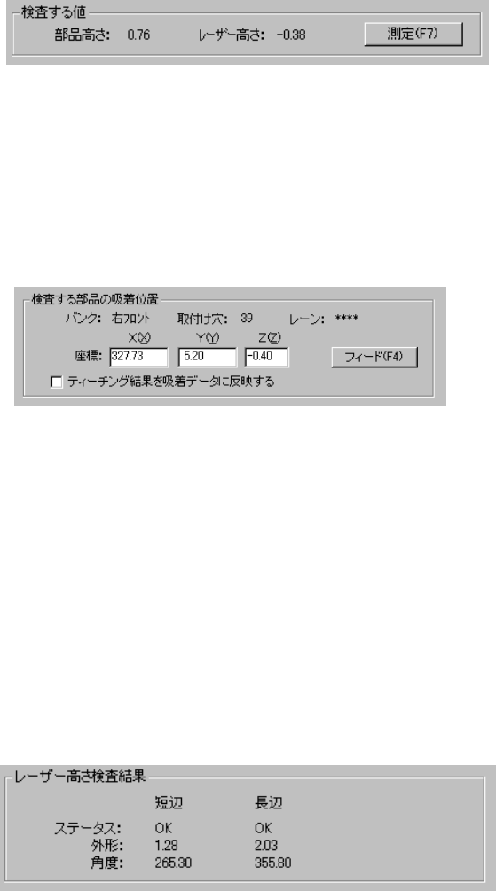 検査を行う部品のレーザ高さおよび部品高さが表示されます。