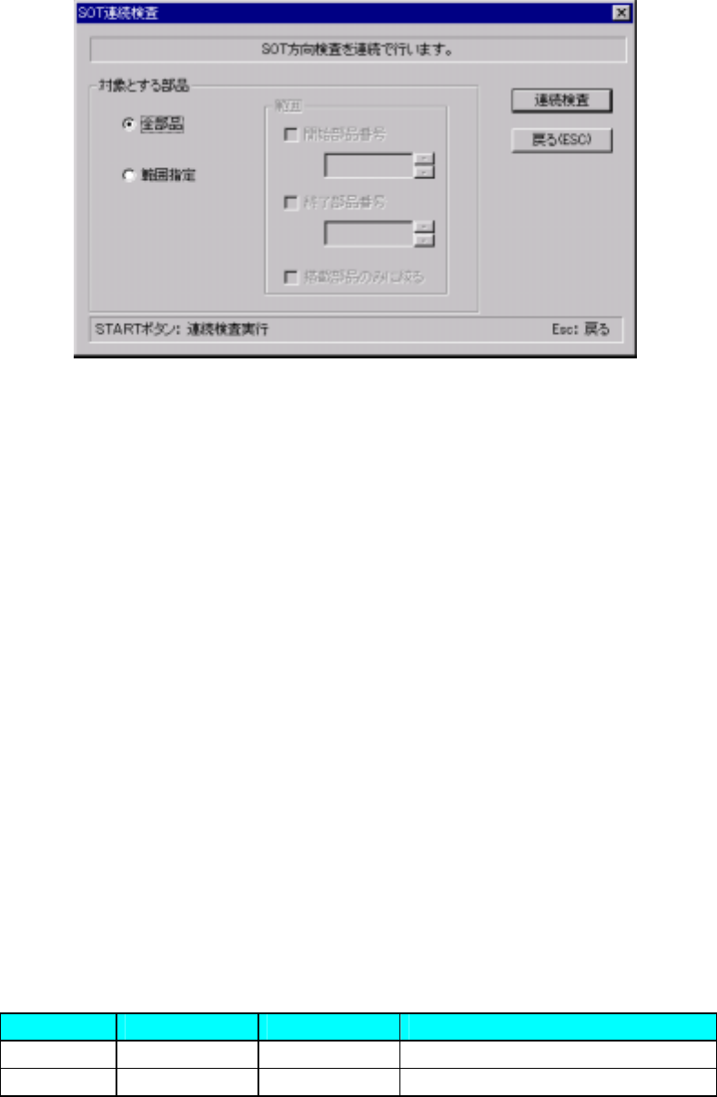 生産メニューの”ツール”,”検査”,”SOT 方向連続検査メニュー選択後、以下の SOT 方向連続検