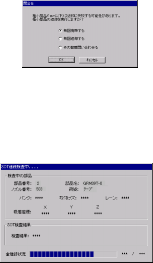 続検査開始後直後に、部品を検査後にどう扱うかを選ぶダイアログが表示されます。