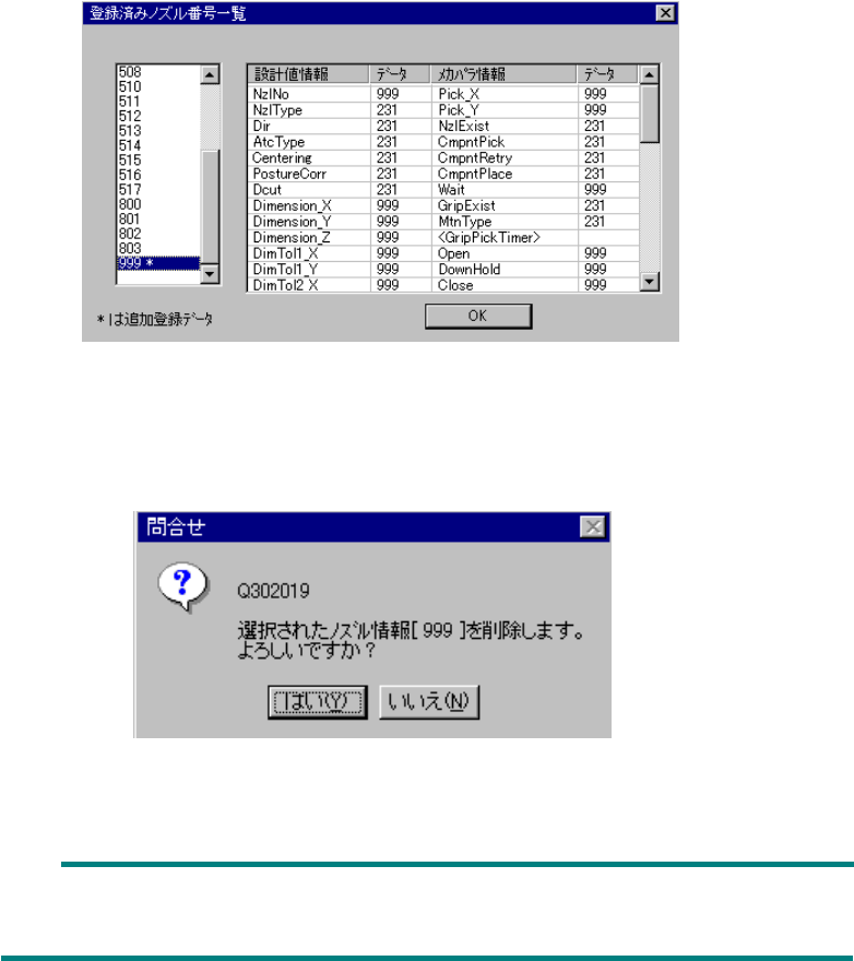 注)追加登録データのみ削除可能です。標準のノズルは削除できません。注)追加登録データのみ削除可能です。標準のノズルは削除できません。