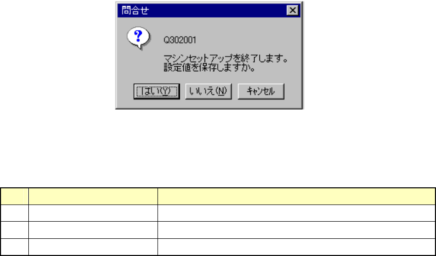 マシンセットアップグループで設定値の変更を行った場合に、保存を行うかどうかの問い合わせダ