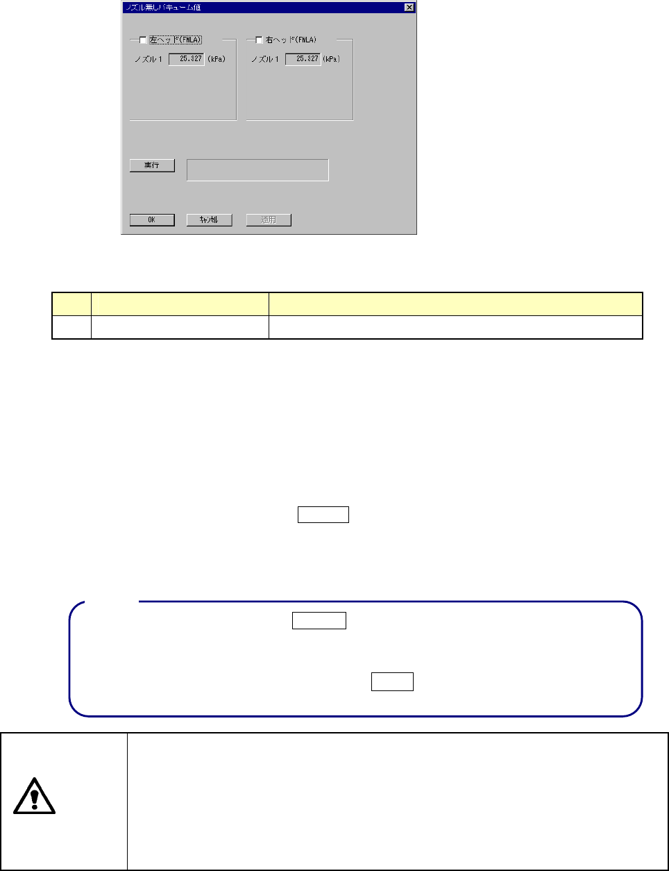 ノズル無しのバキューム値設定ダイアログノズル無しのバキューム値設定ダイアログ