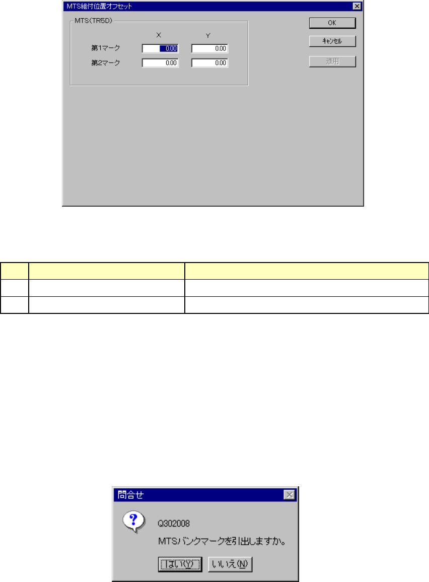 MTS組付位置オフセットの設定ダイアログMTS組付位置オフセットの設定ダイアログ
