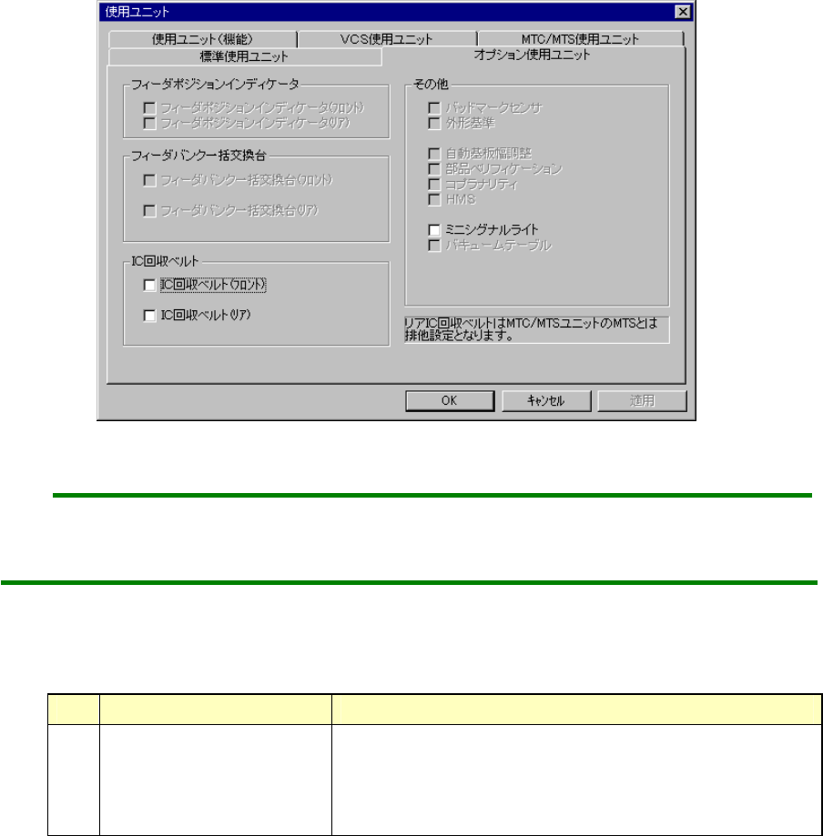 オプション使用ユニット設定のダイアログオプション使用ユニット設定のダイアログ