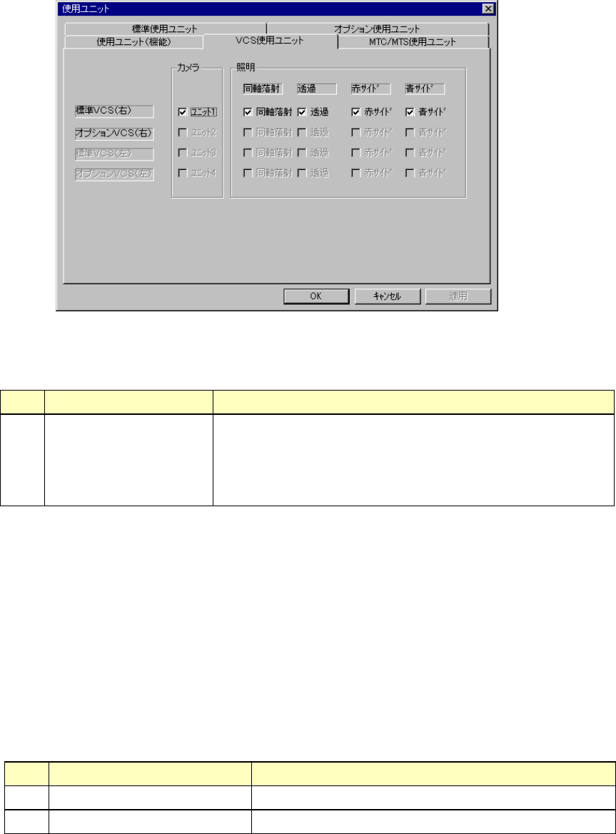 [VCS使用ユニット]のタブを選択すると、図 8-2-2-10-4 のVCS使用ユニット設定のダイアロ