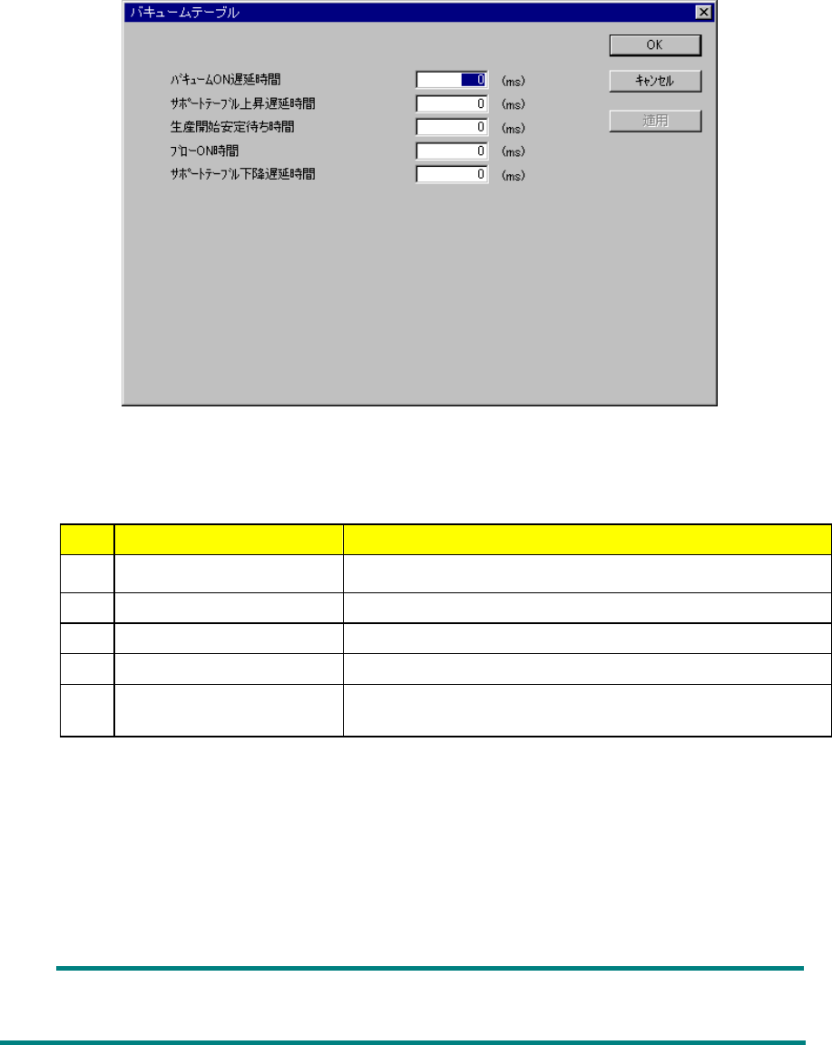 バキュームテーブルを選択すると、図 8-2-2-13-1 のバキュームテーブル設定ダイアログが表示され