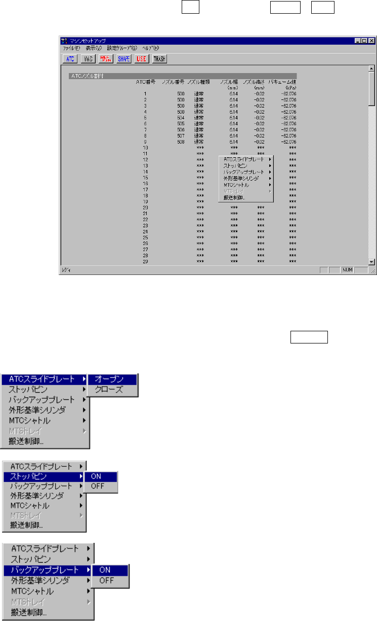 各ヘッドのバキューム制御、バキュームON/OFF表示