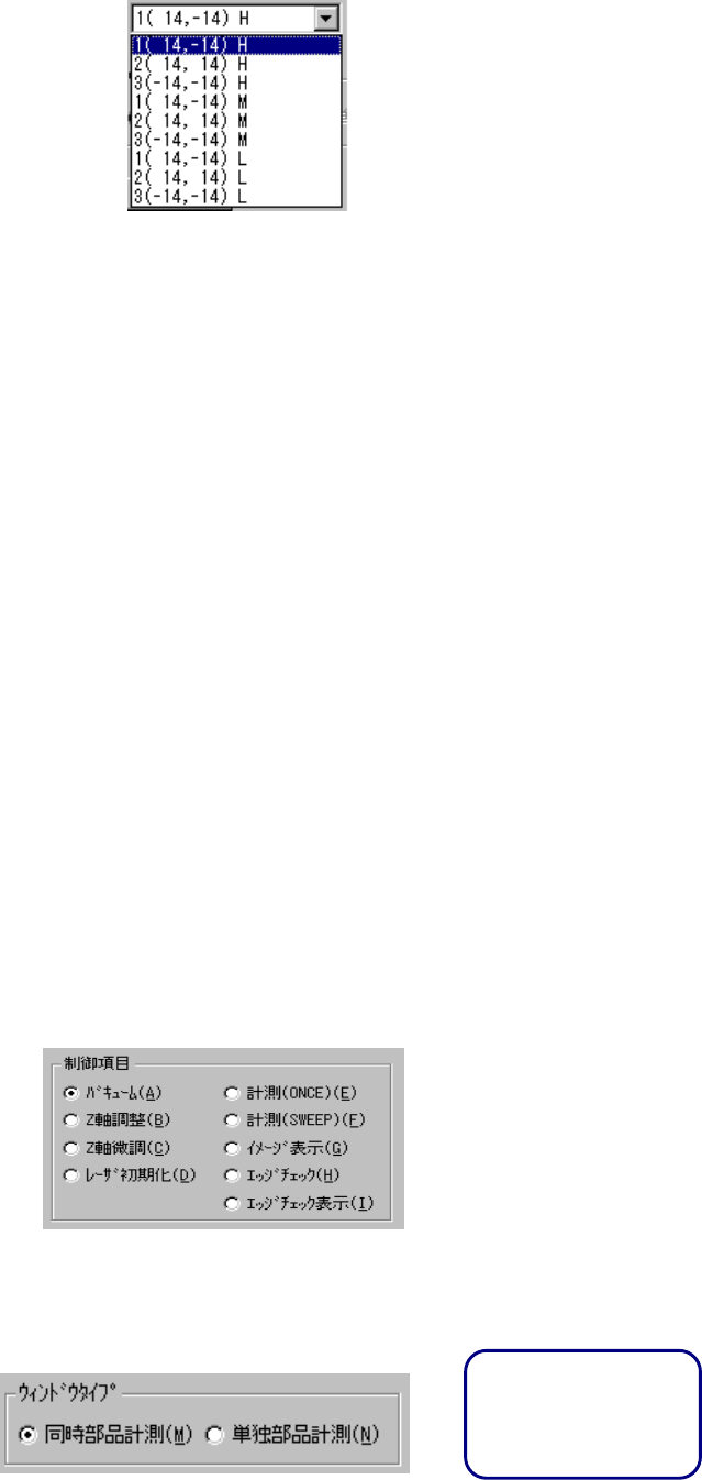 計測時のウィンドウタイプをラジオボタンにより選択します。