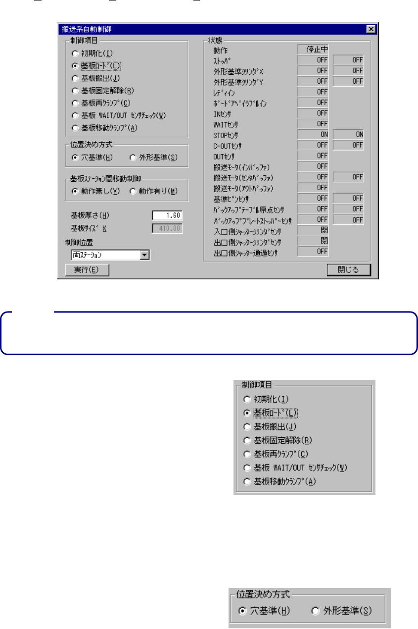 ◆ 制御項目(図 9-3-2 ダイアログ参照)で“初期化”“基板搬出”“基板固定解除”“基板 WAIT/OUT