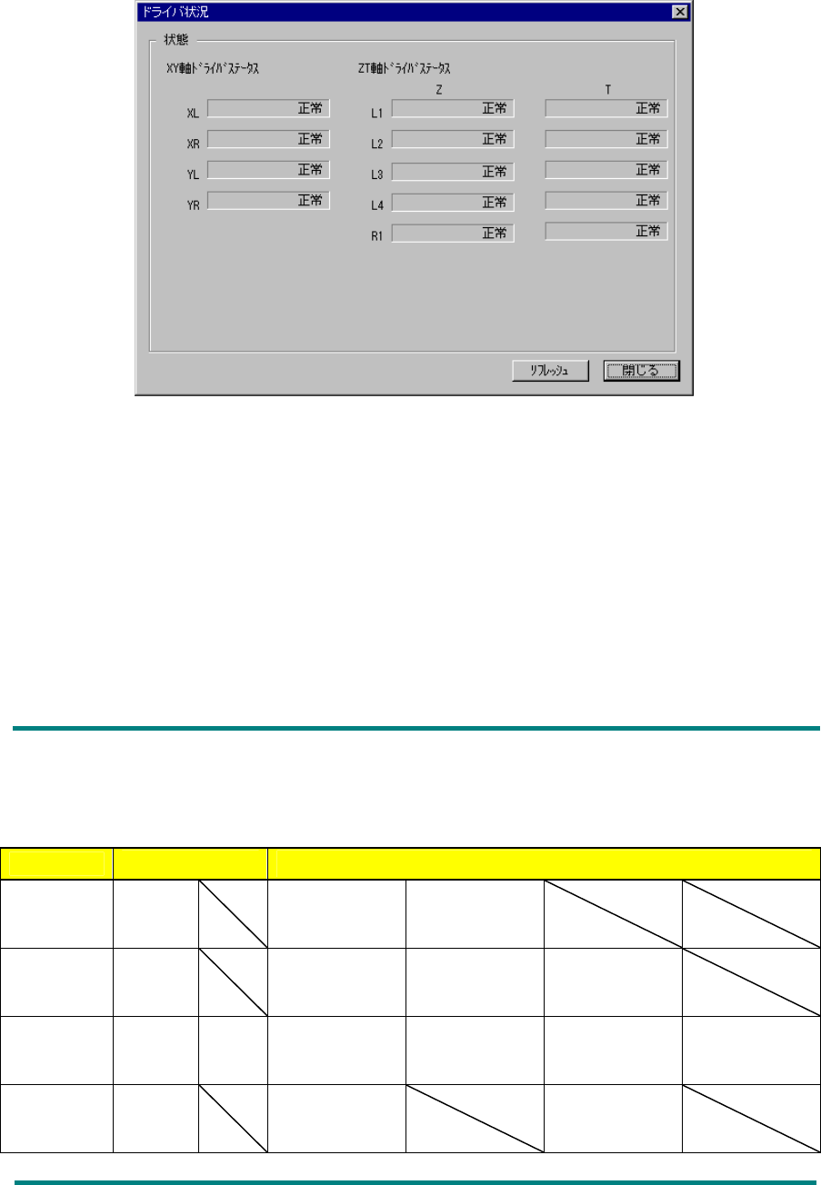 軸ドライバの状態を正常、過電流、過負荷、駆動電源異常、EEPROM異常、過熱、エンコーダ
