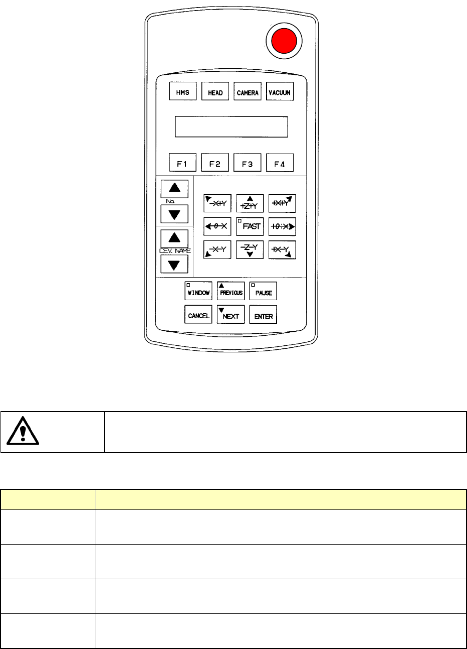 2 - 3 2-1-2. HOD :ハンドヘルド操作盤 :ハンドヘルド操作盤 :ハンドヘルド操作盤 :ハンドヘルド操作盤 図 図 図 図 2-1- 2 HOD :ハンドヘルド操作盤 :ハンドヘルド操作盤 :ハンドヘルド操作盤 :ハンドヘルド操作盤 注意 注意 注意 注意 人体への損傷を防ぐため, HOD操作中は装置内部に手を入れたり, 顔や頭を 人体への損傷を防ぐため, HOD操作中は装置内部に手を入れたり, 顔や頭を 人体への損傷を防…