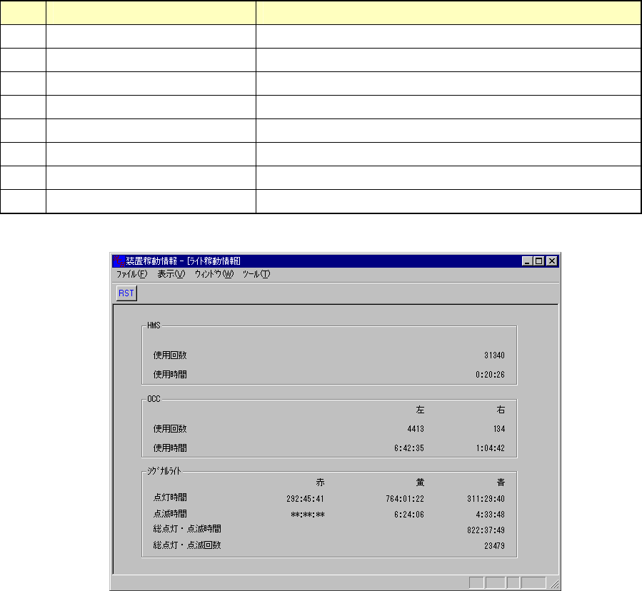 メニューバーの [ウィンドウ(W)→ ライト稼動情報] を選択すると、図 10-4-4-1 が表示さます。