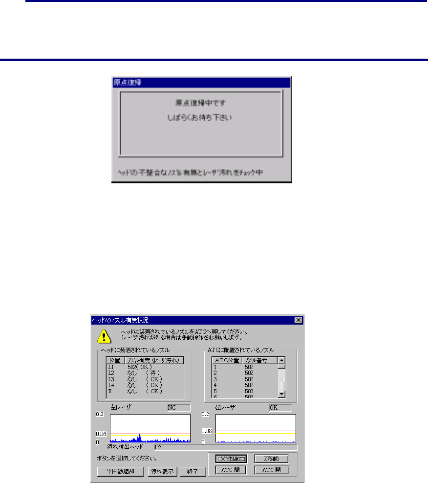 レーザ汚れチェック中表示画面(原点復帰)レーザ汚れチェック中表示画面(原点復帰)