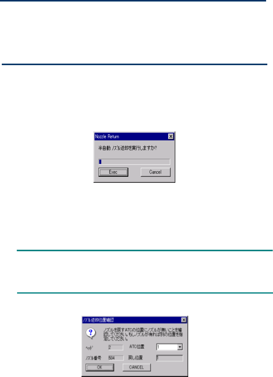 <OK>ボタンを押すと指定された ATC 位置にノズルを返却します。1 本返却後のノズル