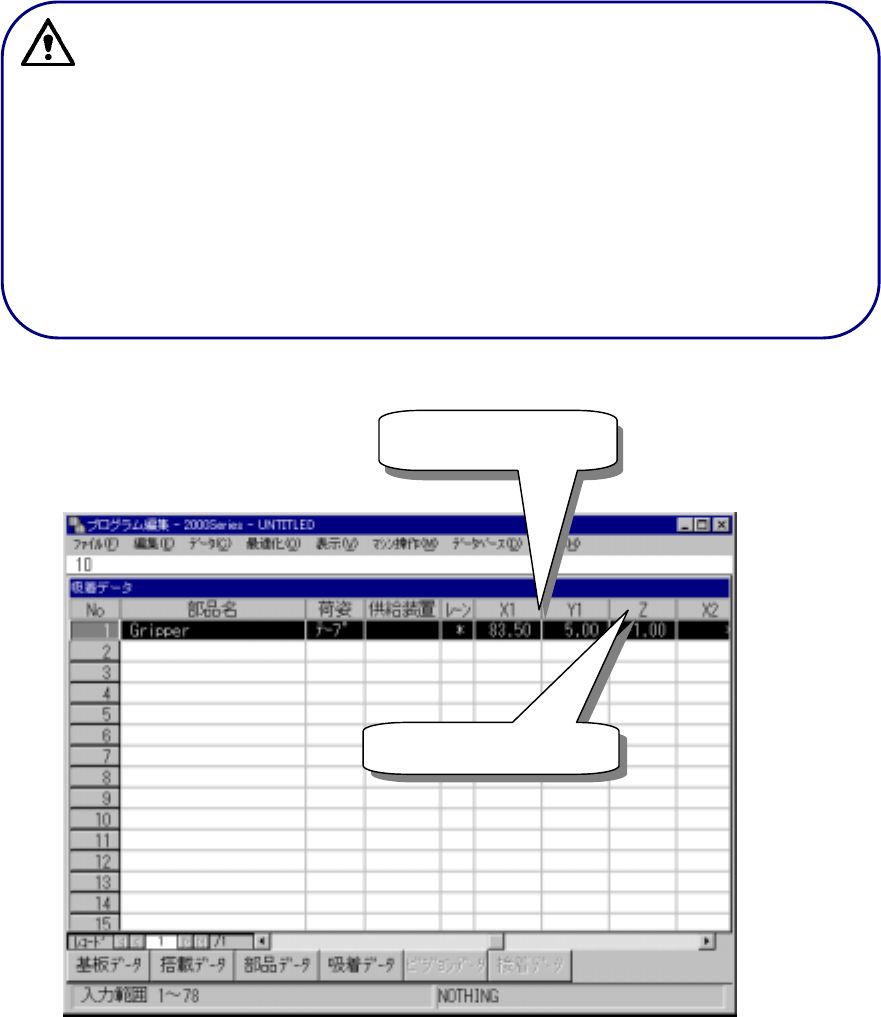 吸着データは、通常のノズルを使用する場合と変わらりません。従ってグリッパーのアーム位