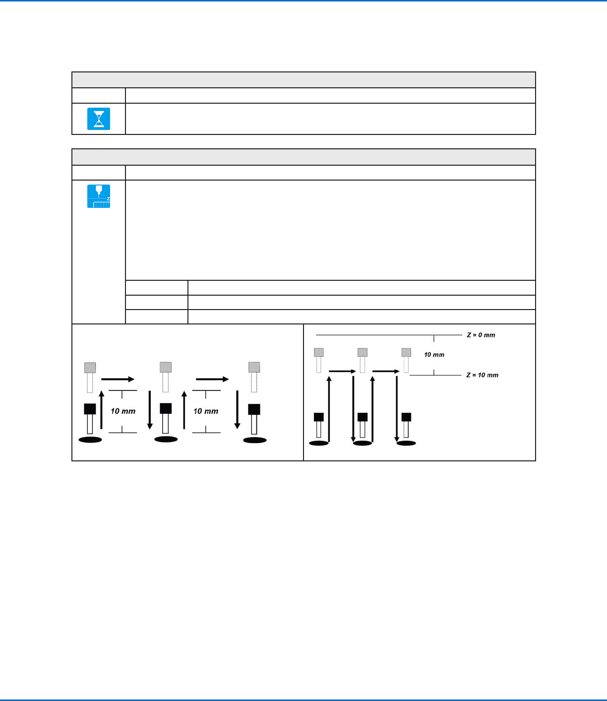 dispensing tip waits at the end point of the previous command for the specified Wait Time (in seconds).