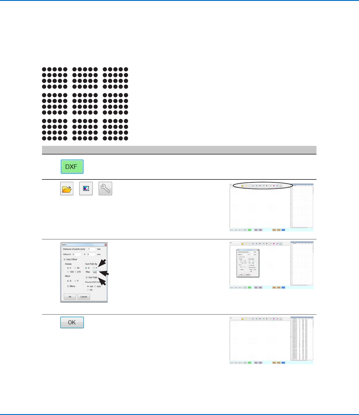 When importing a DXF file that includes an array of dots, you can use the Sort Path By option to choose how the dot