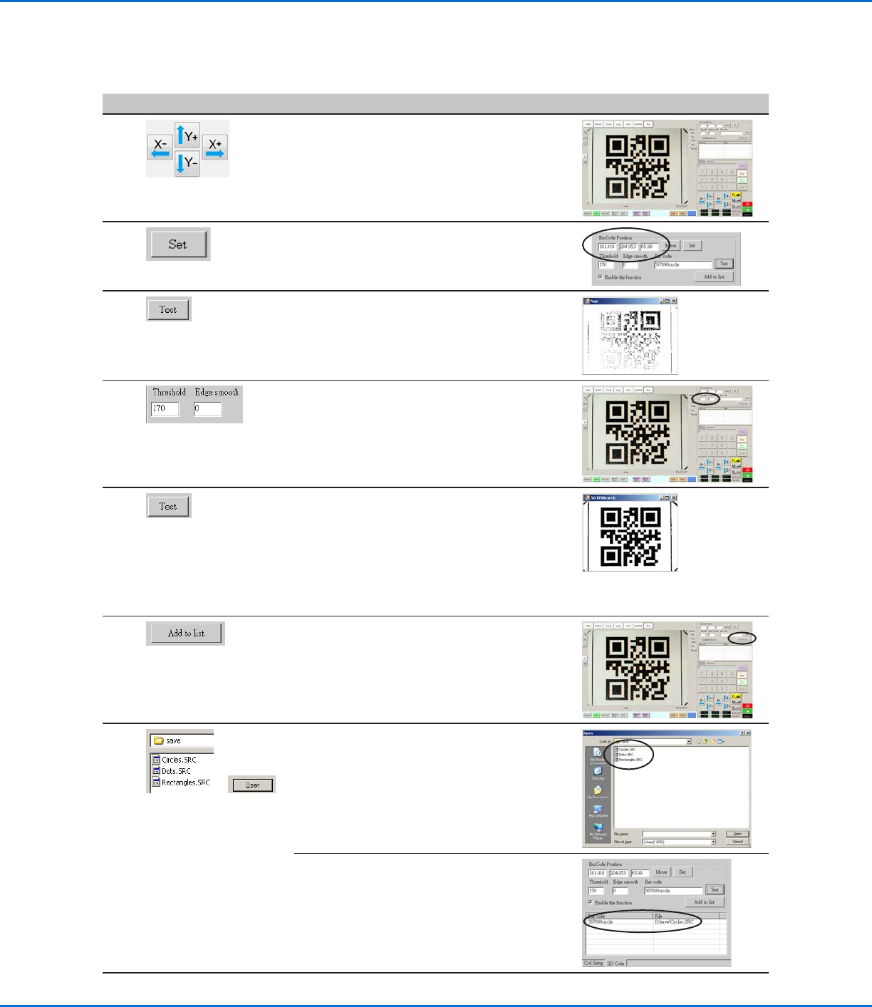 1. Clicking PROGRAM and then RUN to test the program. 2. The system moves to the QR code and scans it.