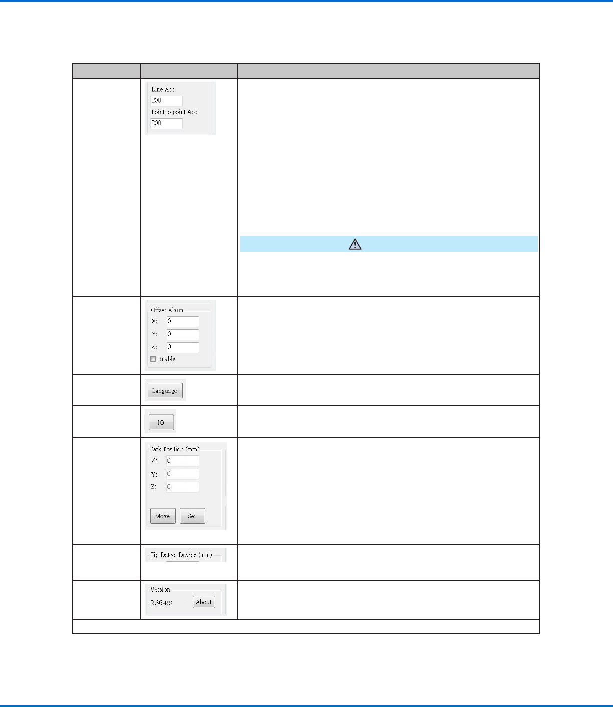 • Line Acc: How the robot accelerates from one point to another.