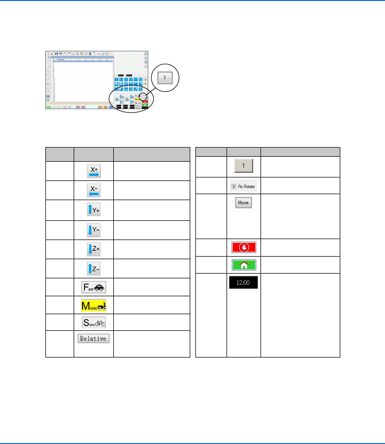 Use the icons on the navigation and jogging window to move the dispensing tip. Click the 1 button to change the