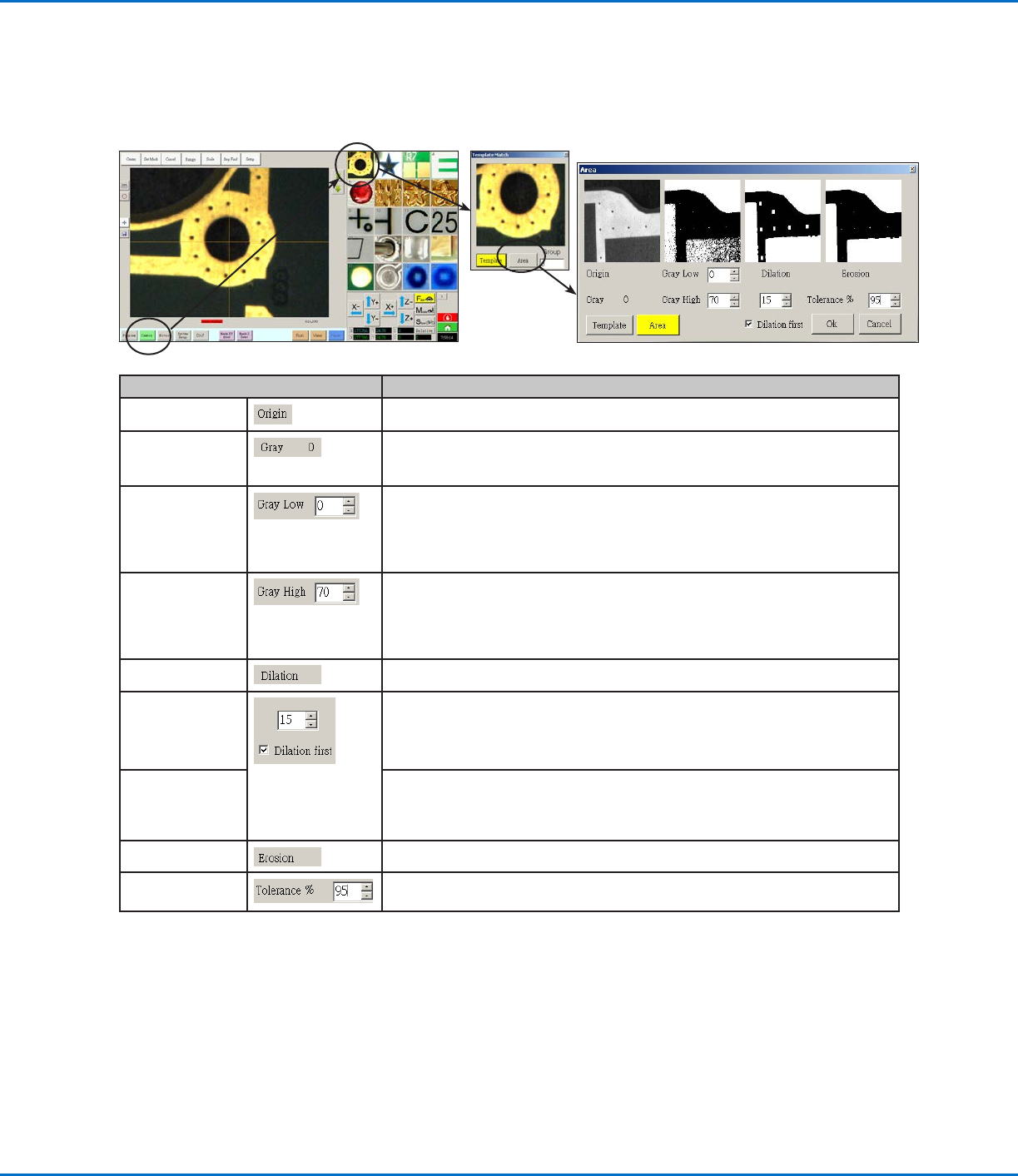 the Template Match window. The Template Match window provides access to the Area window, which is used to