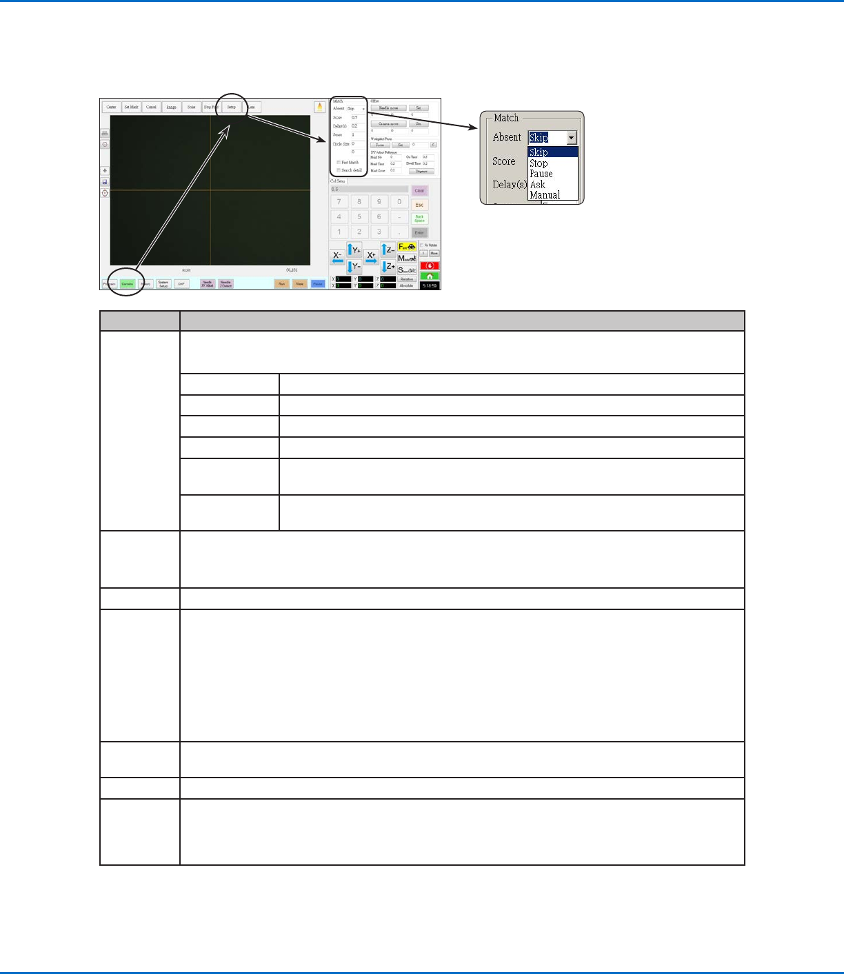 Use the fields under CAMERA > SETUP > MATCH to adjust how the system functions when it searches for marks.