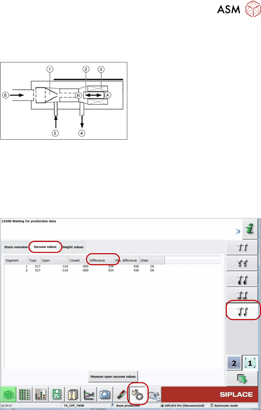 5 Placement Heads 5.3 Twin Head Technical Training SIPLACE TX-Series 10/2016 139 5.3.4 Vacuum System Overview 5.3.4.1 Vacuum System A - Piston in "open" position B - Piston in "closed" position 1. Ven…