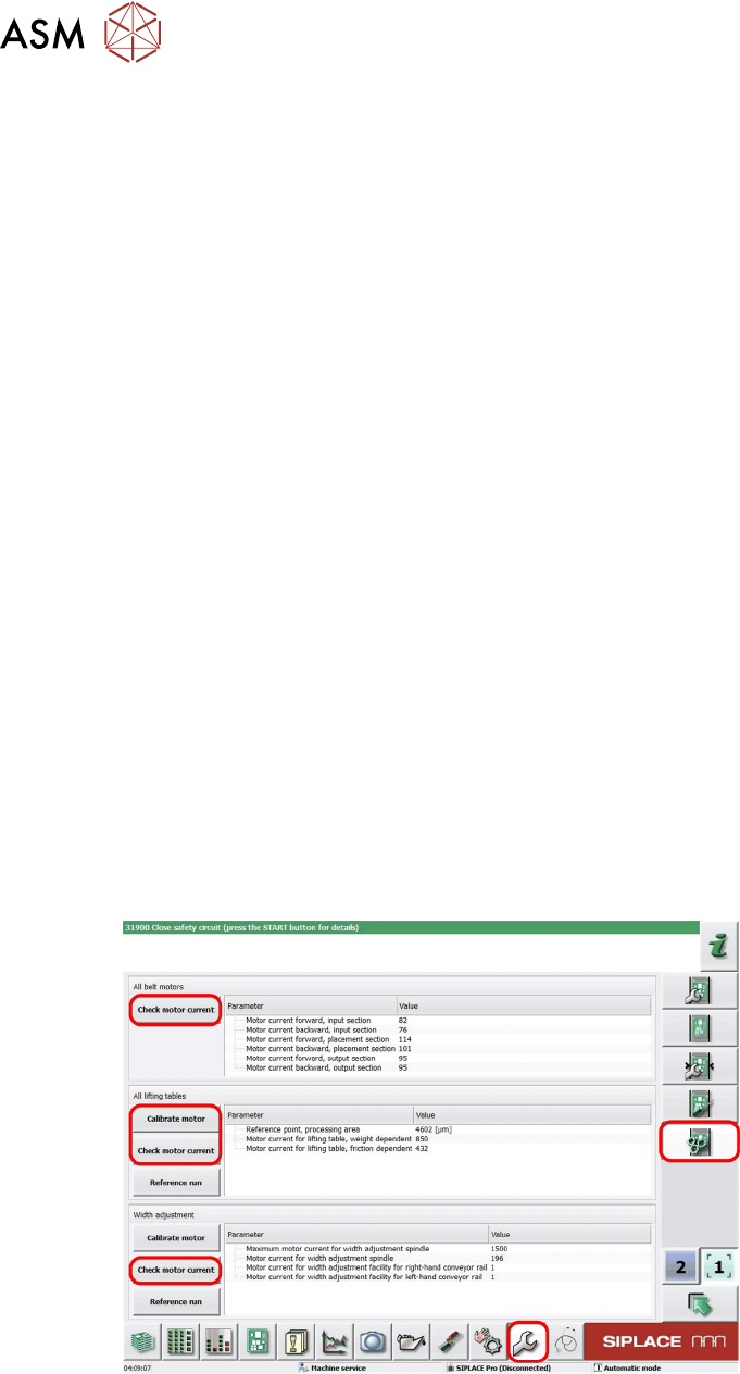 7.5.2.2 Calibrating the motor (Lifting)/ Checking the motor current (Lifting/ Transport/