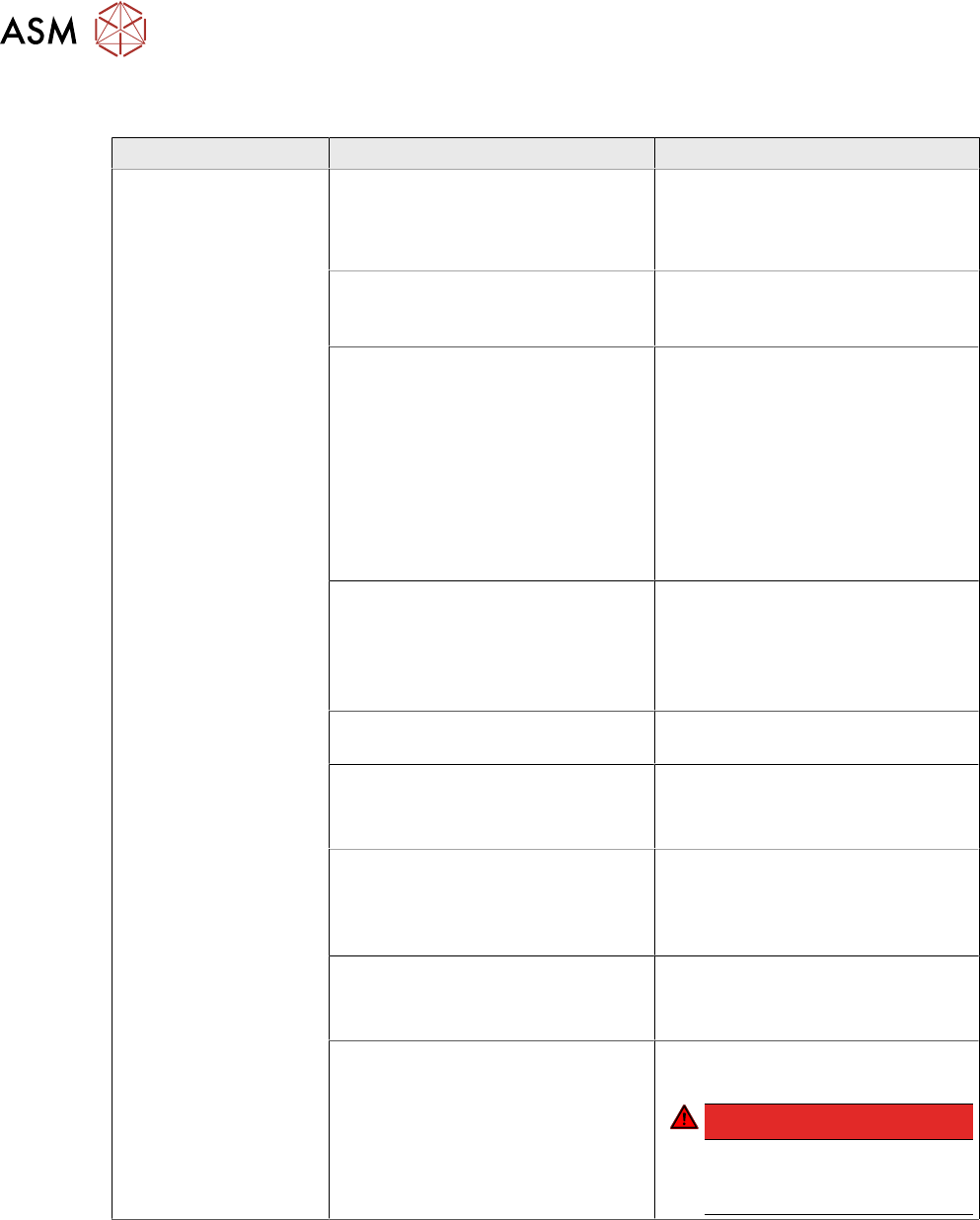 8 Power Supply 8.8 Analysis - Common Error List 210 Technical Training SIPLACE TX-Series 10/2016 8.8 Analysis - Common Error List Error Possible Cause Action No reaction after START pressed Duration of pressing and relea…