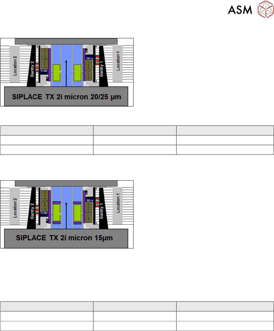 2 Machine Basic Overview 2.4 Machine Configuration 22 Technical Training SIPLACE TX-Series 10/2016 TX 2i Machine Configuration Two gantries with same head types: ● C&P20 P / C&P20 P camera type 23 or 41 ● CPP / C…