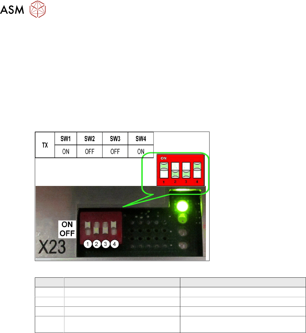 During production with (SW1= OFF) the reject bin is recognized by the sensor and signalized by