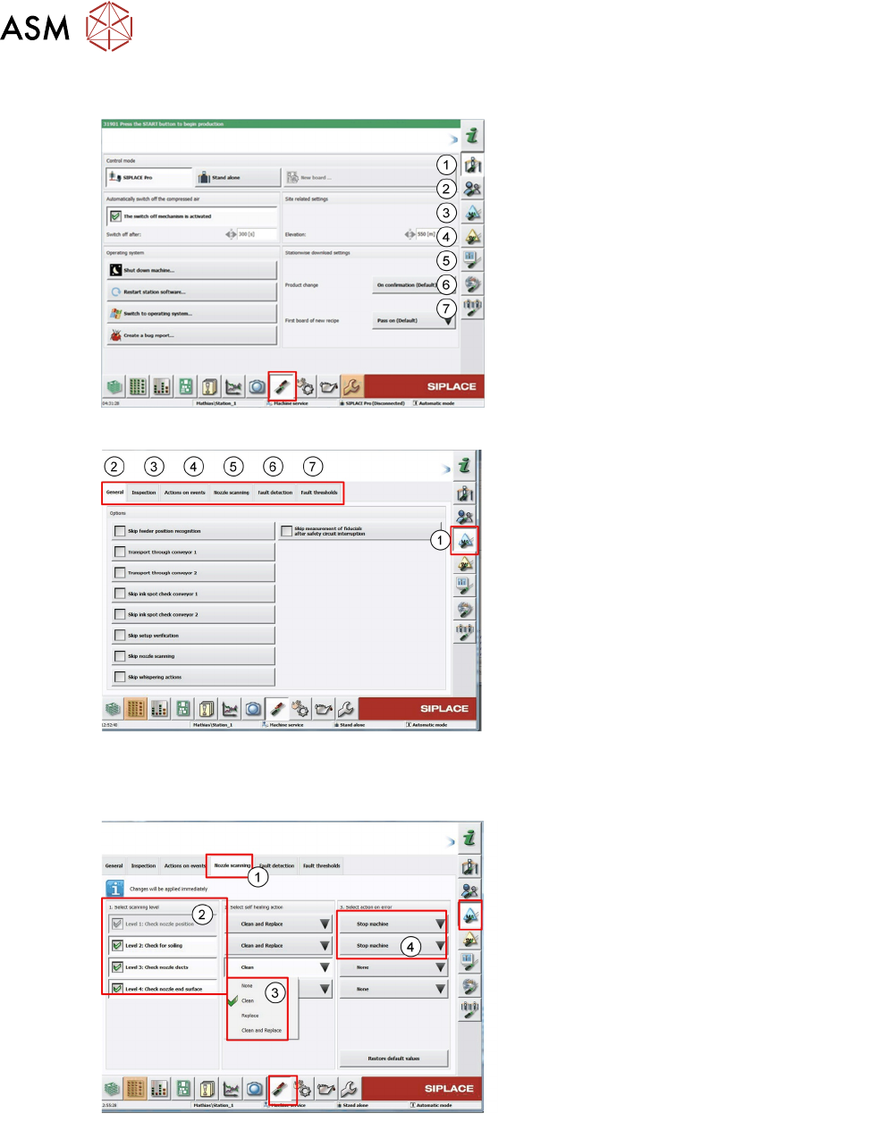 10 Station Software Overviews 10.5 Machine Settings and Options Overview 240 Technical Training SIPLACE TX-Series 10/2016 10.5 Machine Settings and Options Overview 1. Machine settings: control mode, automatic compressed…