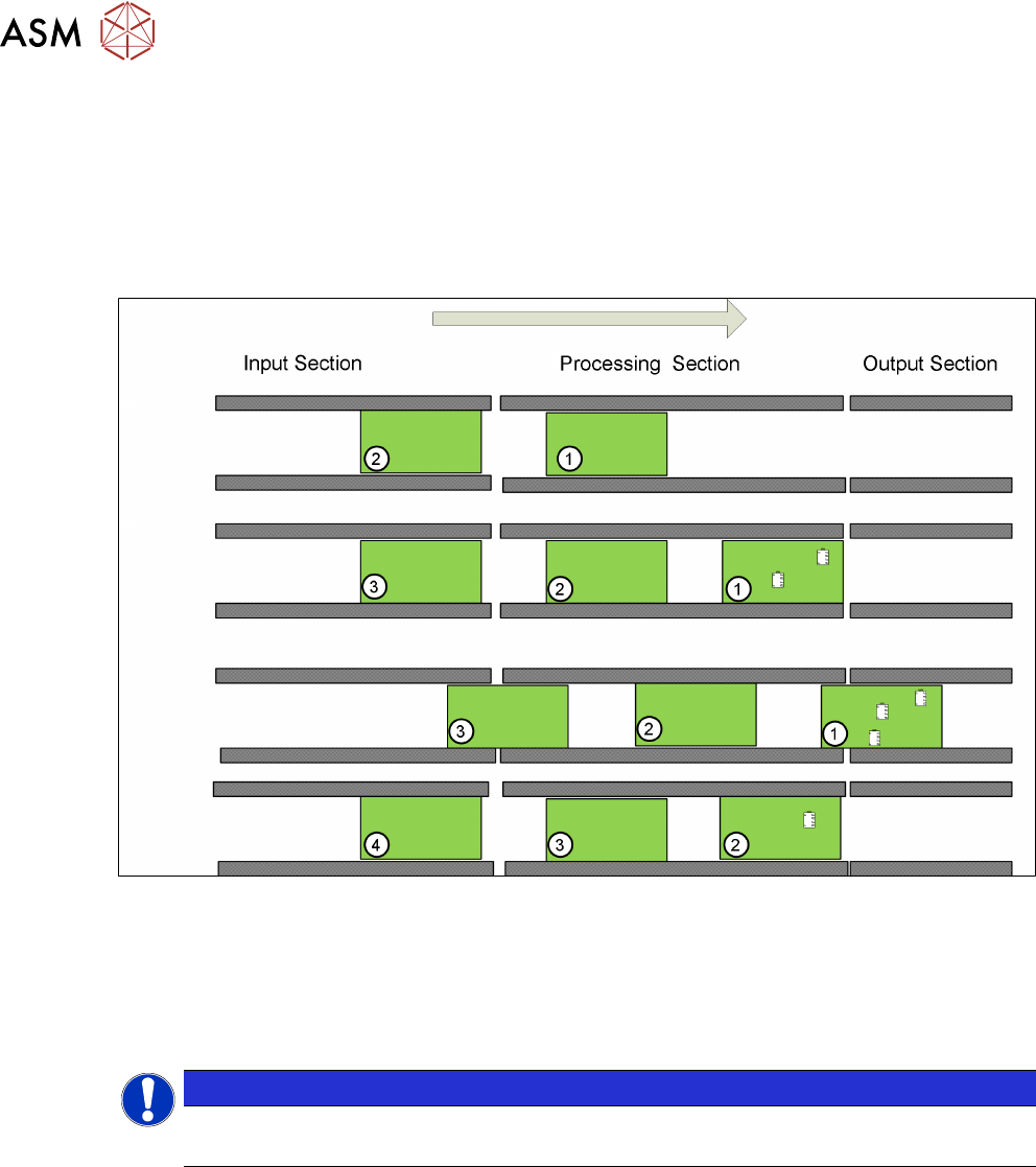 When PCB 1 leaves the processing area PCB 2 moves to the stopper and will be processed, at the