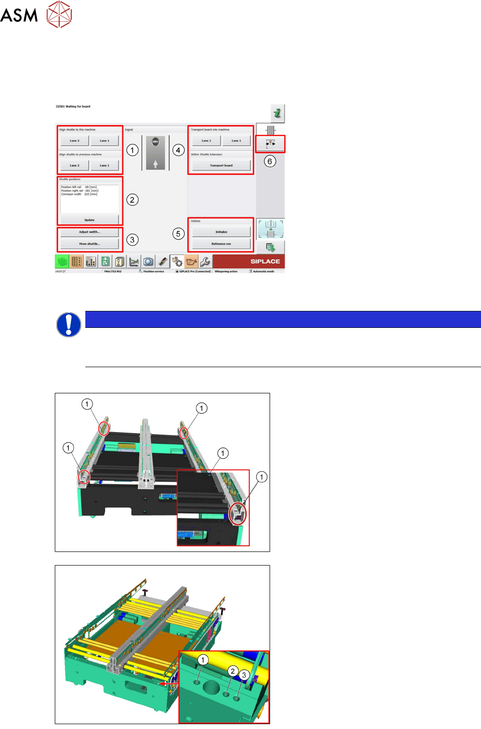 1. Aligment shuttle to the machine