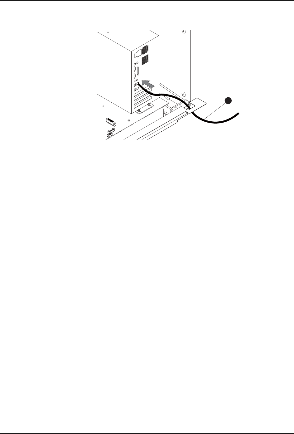 3. 在拆除布线用盖板 (1) 的地方将 LAN 电缆 (2) 通过,连接到 PC 的 LAN1 端口。