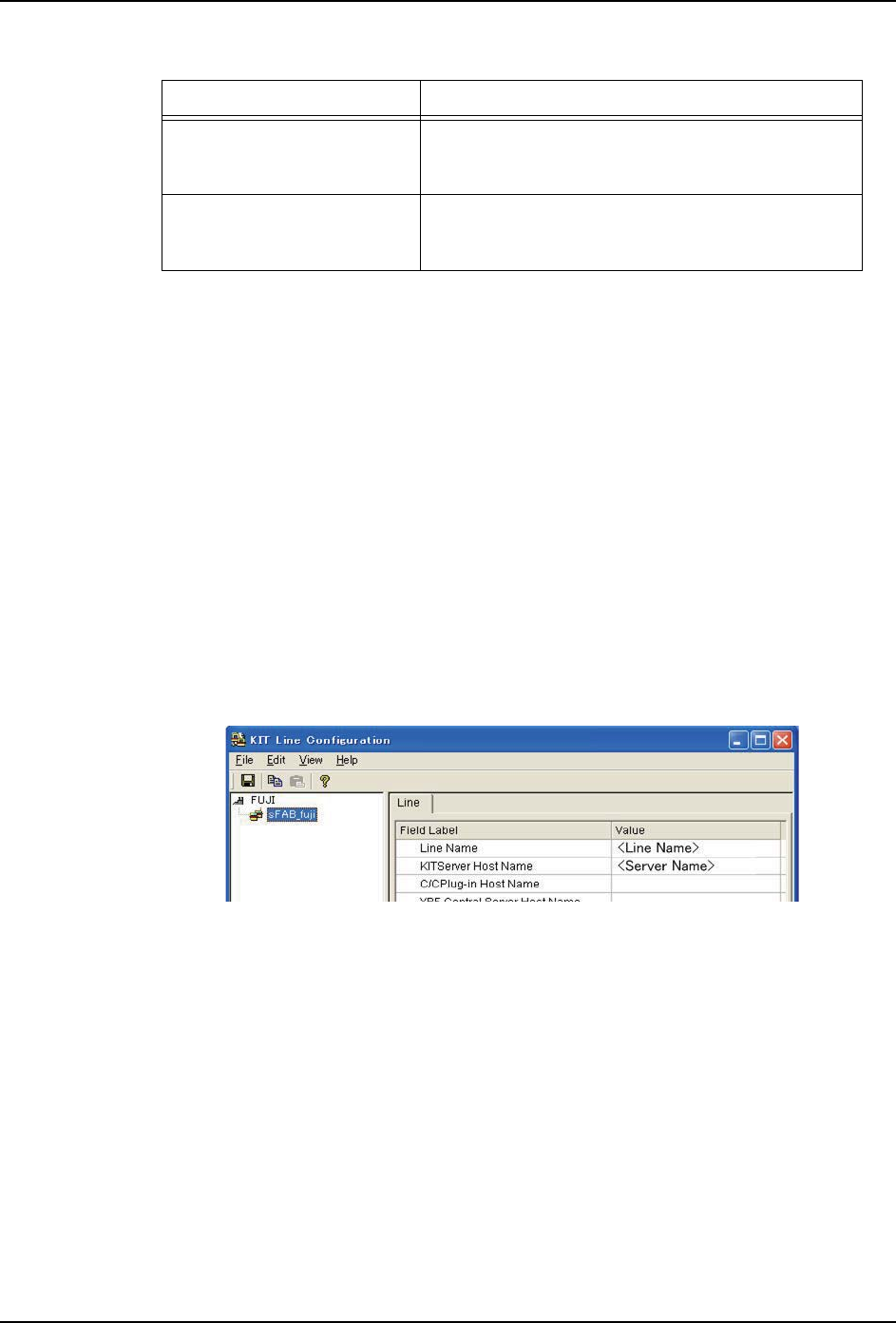 5. 在 [Line Name] 的数据字段中设定 sFAB 的生产线名称,在 [KITServer Hostname] 的数