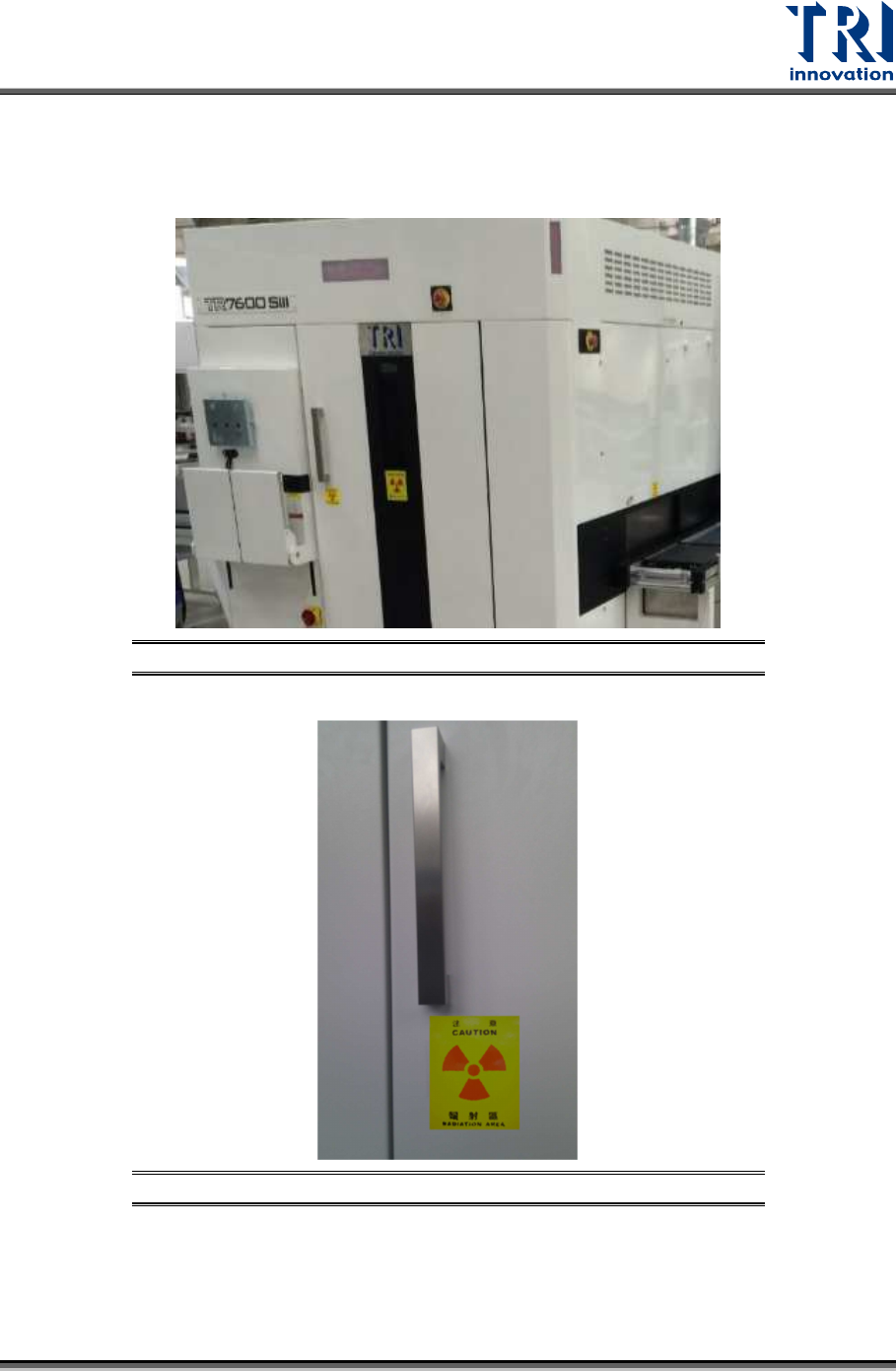 Test Research, Inc. TR7600 SII I Series User G uide – Maintenance 11 2.2 Position of Safety Labels X-R ay W arning Label: M arked on the front door, rear door , r ight gate and left gate. When X-ray is turned on , DO N…