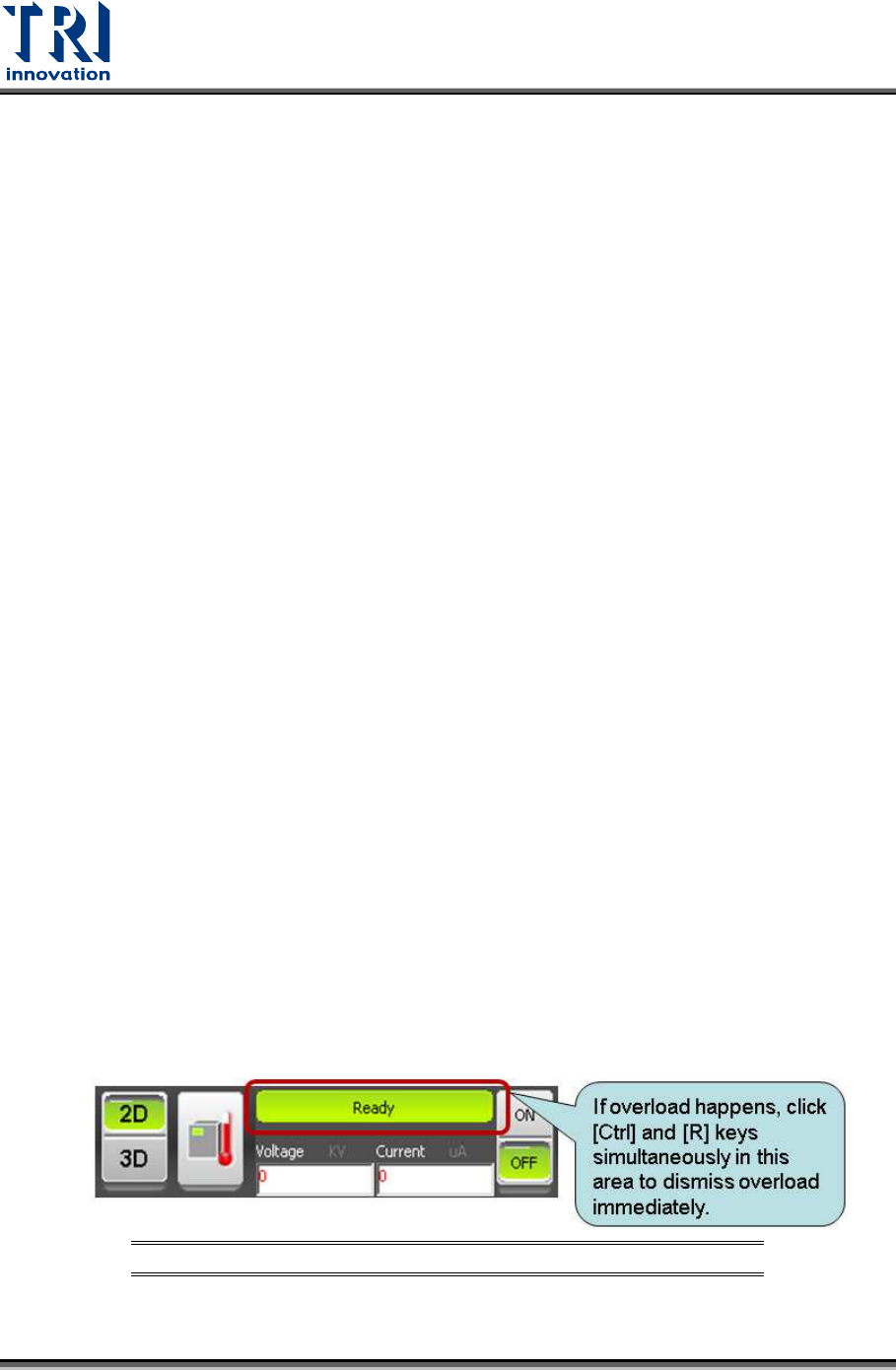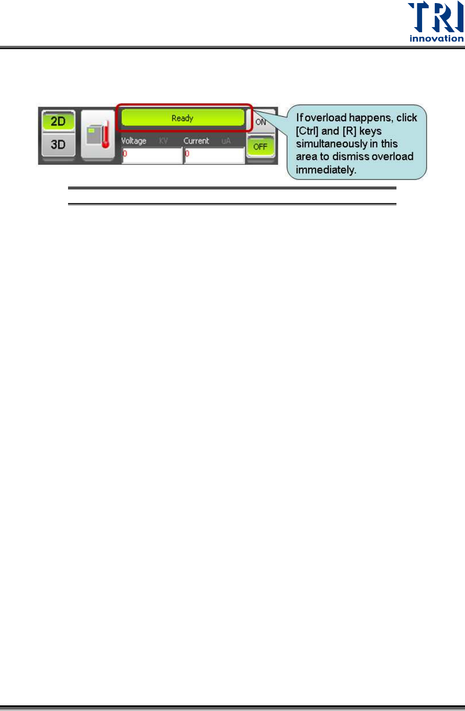 VI. If overload does not happen, click [Off] to turn off X-ray tube. Repeat