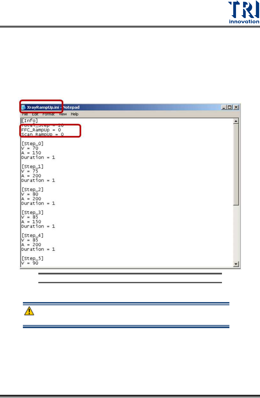 II. Open XrayRampUp.ini file in the main program folder.