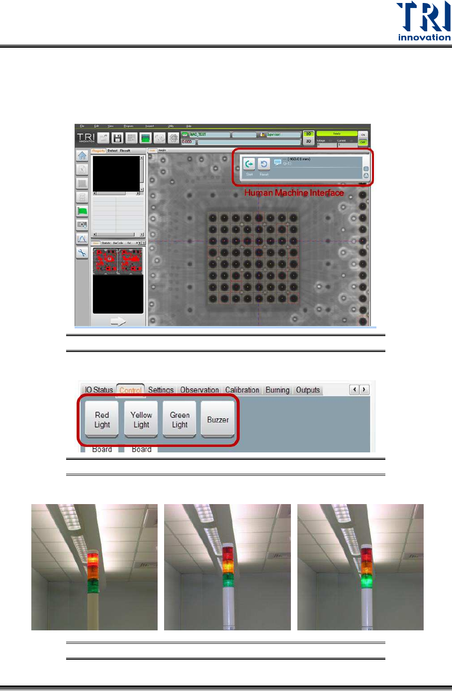 Machine Interface (HMI) in the main program and select [LIGHT] to test if the red light,
