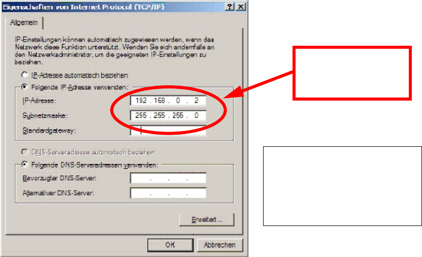 Grundsätzlich wird dem Notebook (Server) die IP-Adresse 192.168.0.2 1