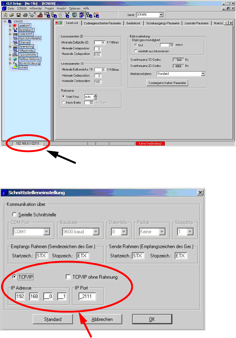 Hierbei müssen für die Verbindung über TCP/IP (Cross-Over-Kabel)