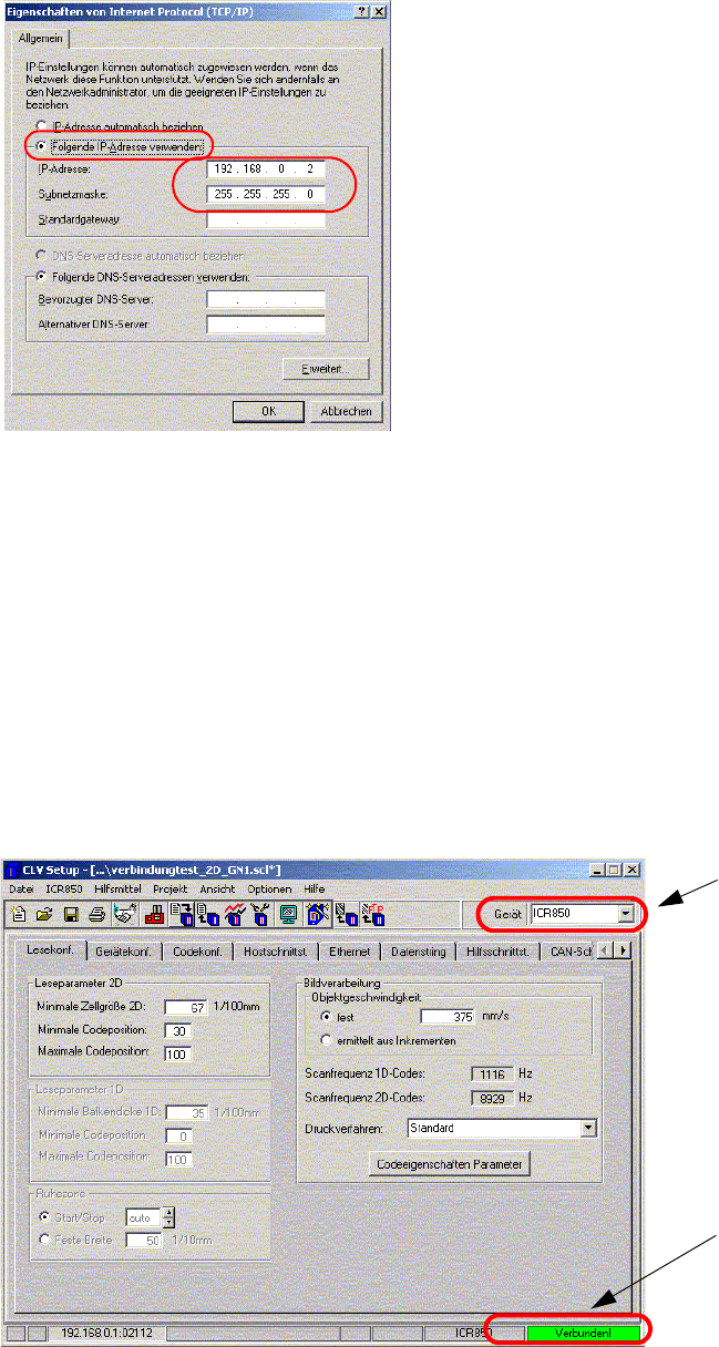 : Bevor Sie das Programm CLV starten, verbinden Sie sich über ein Netzwerkkabel (Twist pair,
