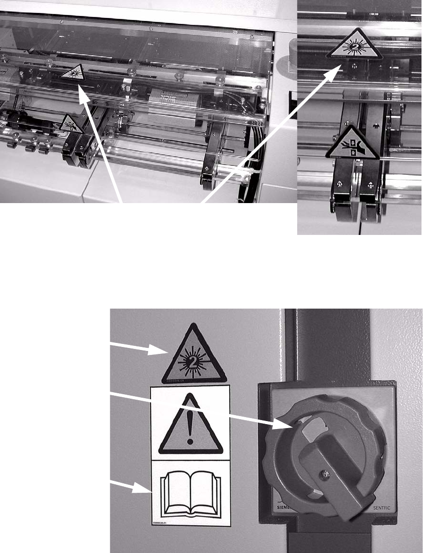 : Attach the laser warning label to the Makrolon window on the input belt.