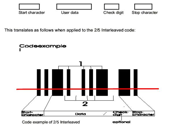 coded is fixed for each barcode type. The information is located in both the lines and the gaps of