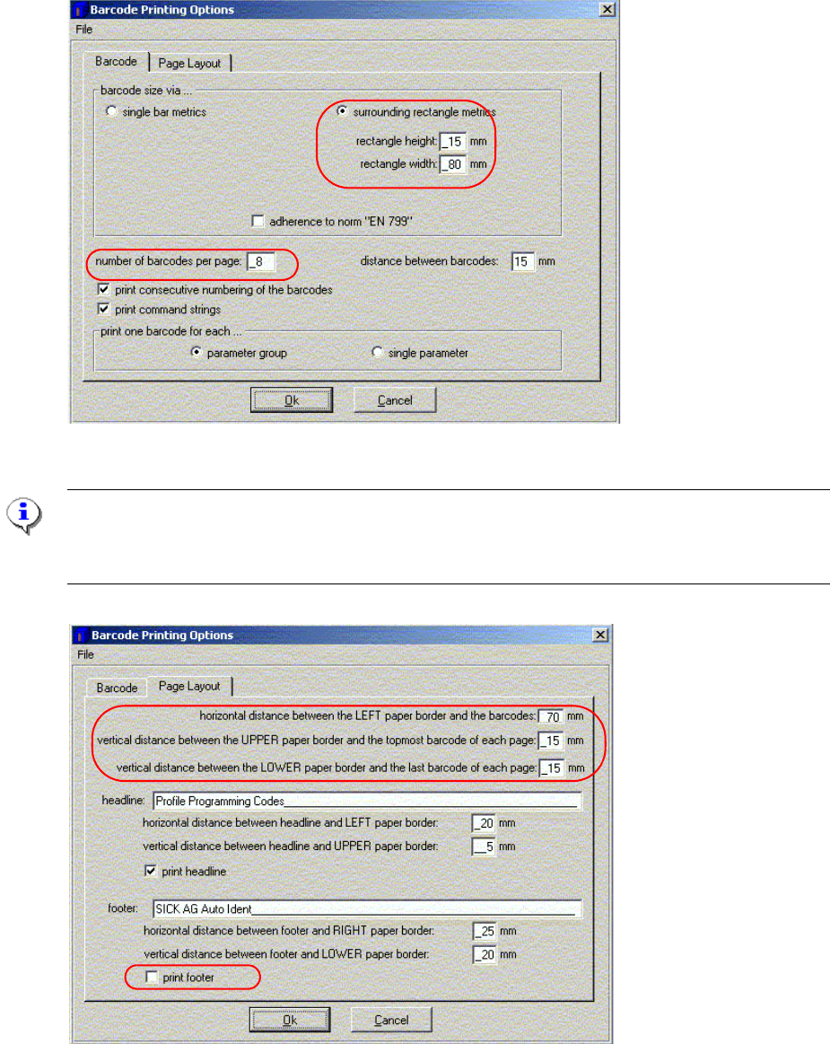 For the CLV42x barcode scanner, cancel printing of the footer so that you can print all 8 barcodes