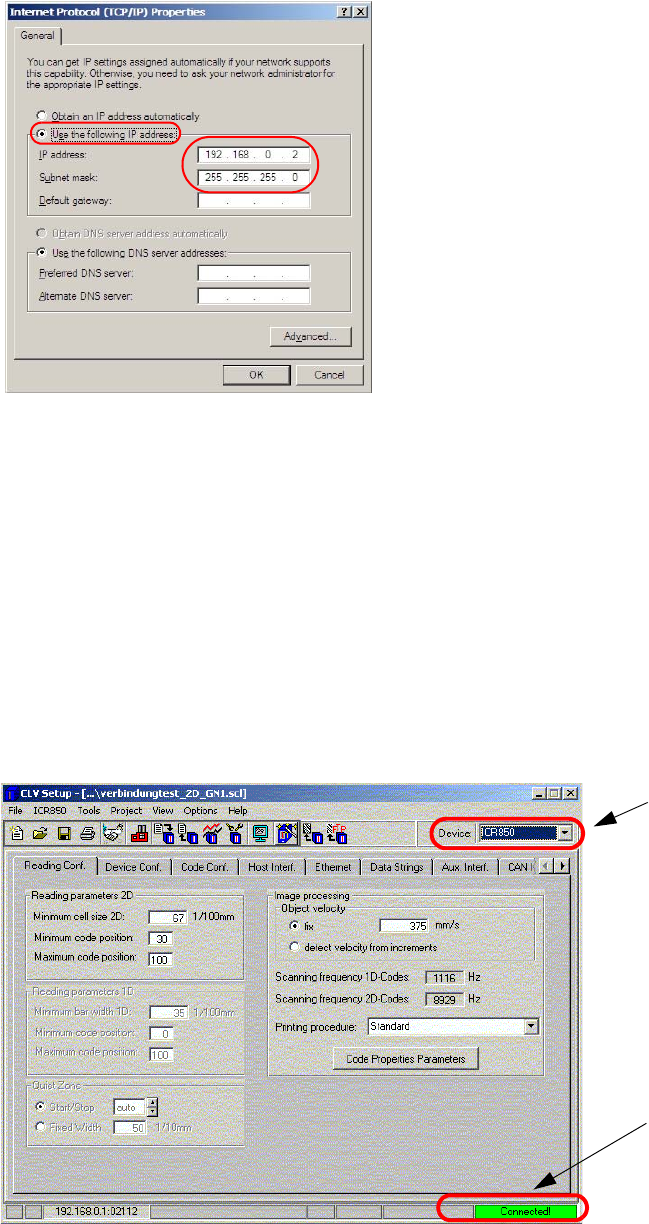 : Before you start the CLV program, connect to the 2D barcode scanner using a network cable