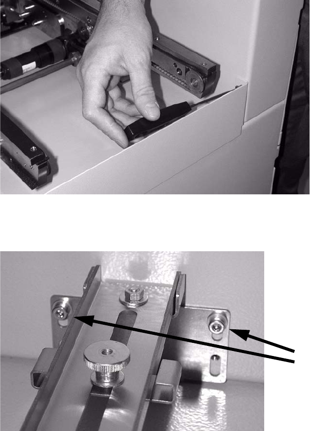 : Demontieren Sie ggf. den stirnseitigen Eingreifschutz (2 Inbusschrauben auf jeder Seite).