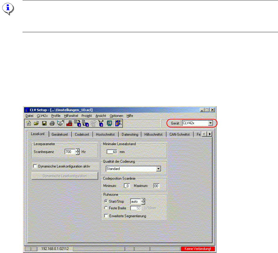 Die Konfiguration der Barcodes erfolgt mit der CLV Software (Version 4.1) von der Firma SICK.