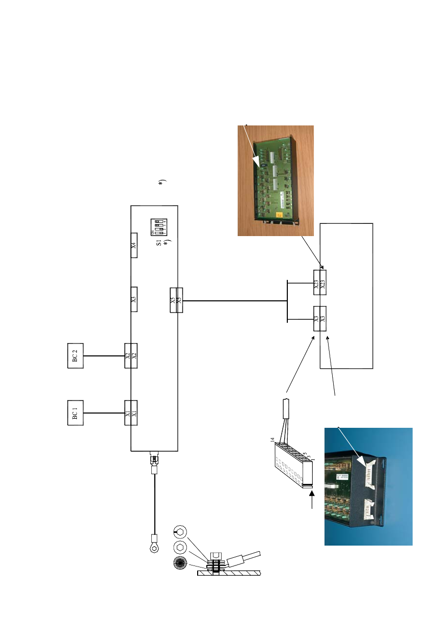 Distributor f. PCB barcode scanner 00372356-xx Barcode scanner top Barcode scanner bottom Conveyor control (ao) 00329219-xx TSP100 03021617-xx Pin 1 X3 ao Pin 1 Please note X3 connector polarity! X23 HS50 wiring for sing…